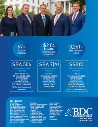 For more than 67 years, Business Development Corporation (BDC) has been a cornerstone of South Carolina's small business ecosystem, fueling growth and prosperity through strategic investments. Our enduring commitment is evident in our historical impact to date, as BDC has invested over $2.04 billion in South Carolina businesses via 3,261 small business loans.